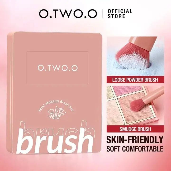 Perfect your makeup anywhere with the O.TWO.O 5pcs Brushes with Mirror – a compact, travel-friendly set designed for flawless application on the go.